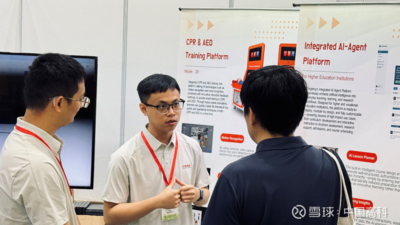 本次展会英腾教育主要展出教育AI智能体平台、心肺复苏AI技能实训机器人两个明星产品,充分展现中国高科集团在推动教育数字化转型、智能解决方案等方面的领先水平。