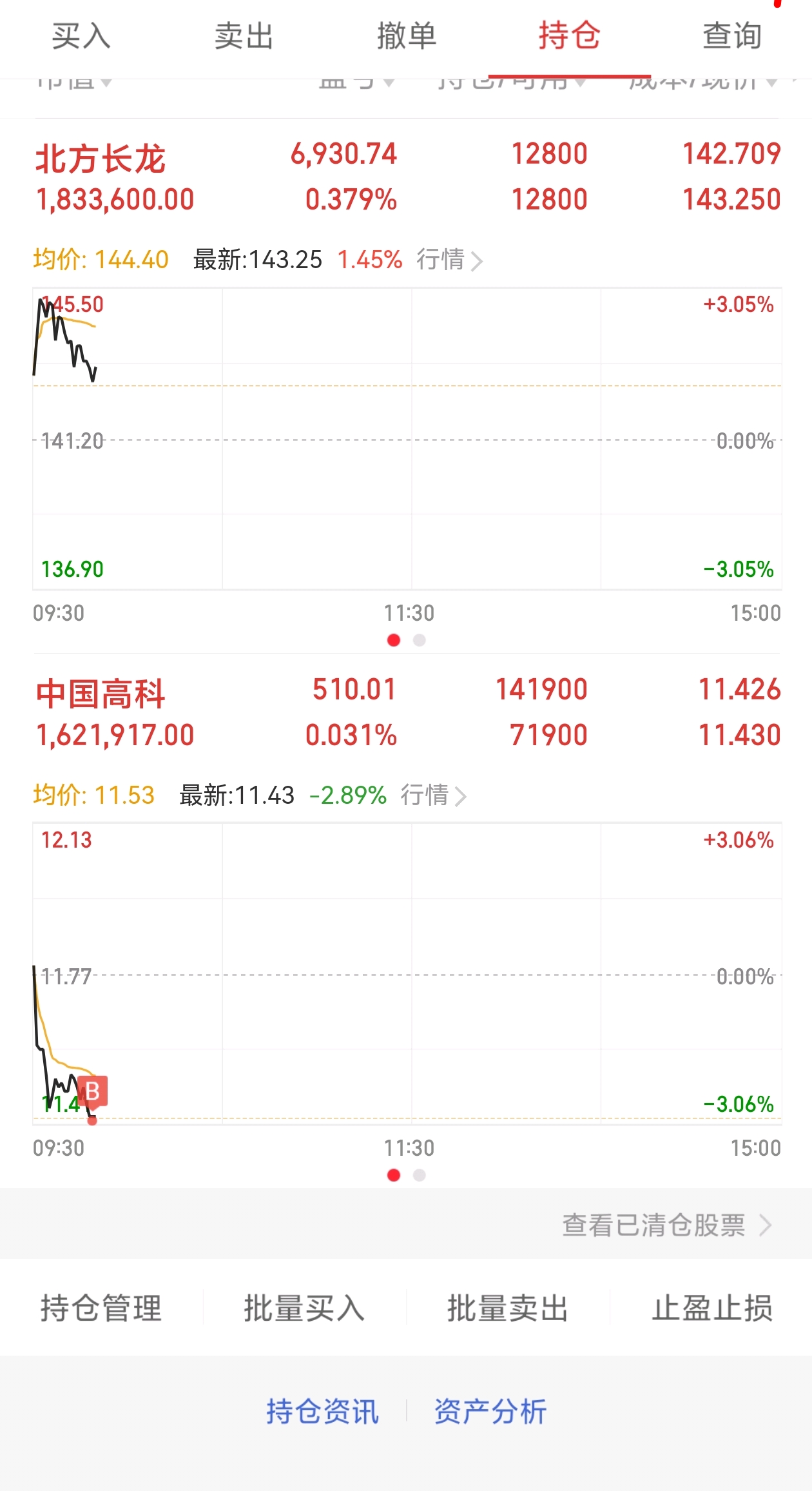$中国高科(SH600730)$ 加了,有机会我会第一时间踢出!!$北方长龙(SZ301357)$ 长龙我暂时没动