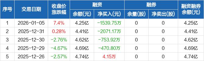中国高科:连续4日融资净偿还累计4835.64万元(01-05)