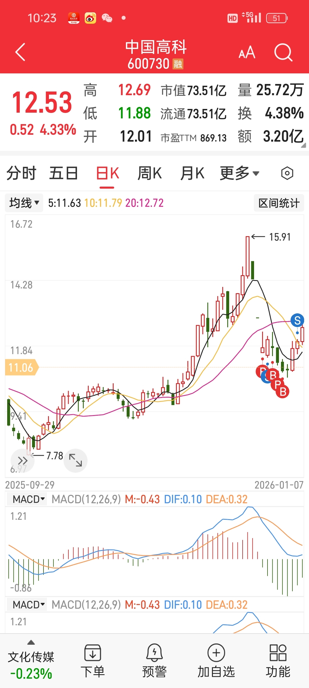 $中国高科(SH600730)$ 走了,祝留下的发财