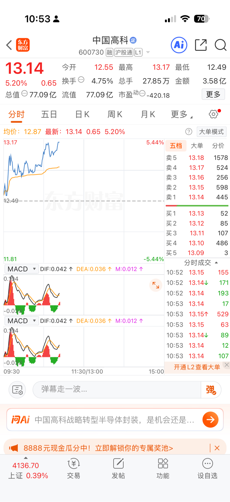 $中国高科(SH600730)$ 你是想表达你很浪漫吗
