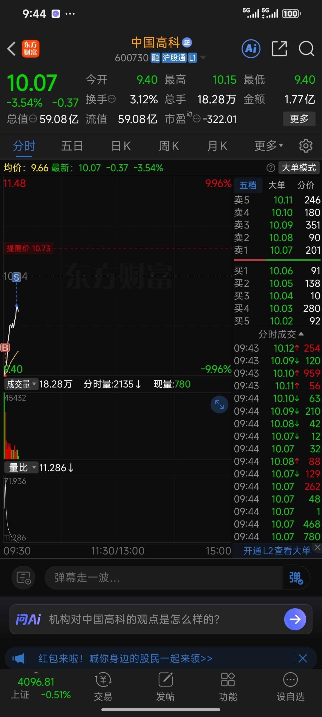 $中国高科(SH600730)$ 10.13卖了先降降成本