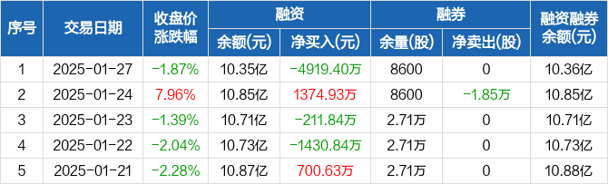 爱旭股份:融资净偿还4919.4万元,融资余额10.35亿元(01-27)