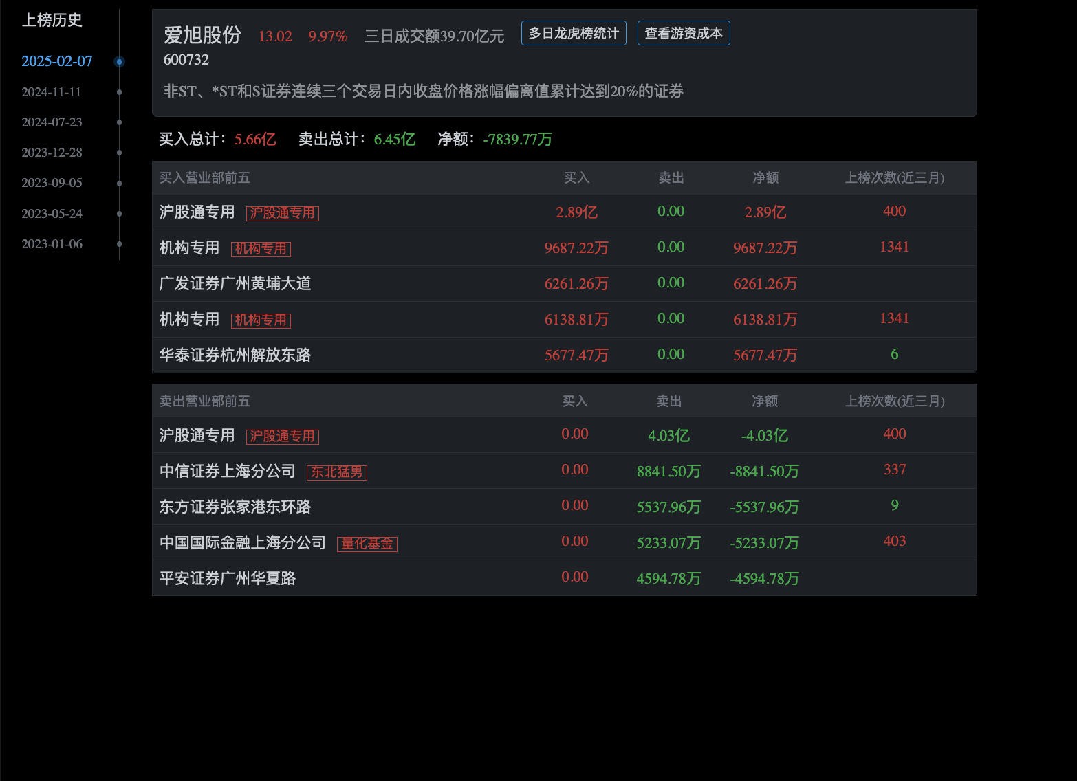 爱旭股份今日游资龙虎榜席位上榜数据如下!