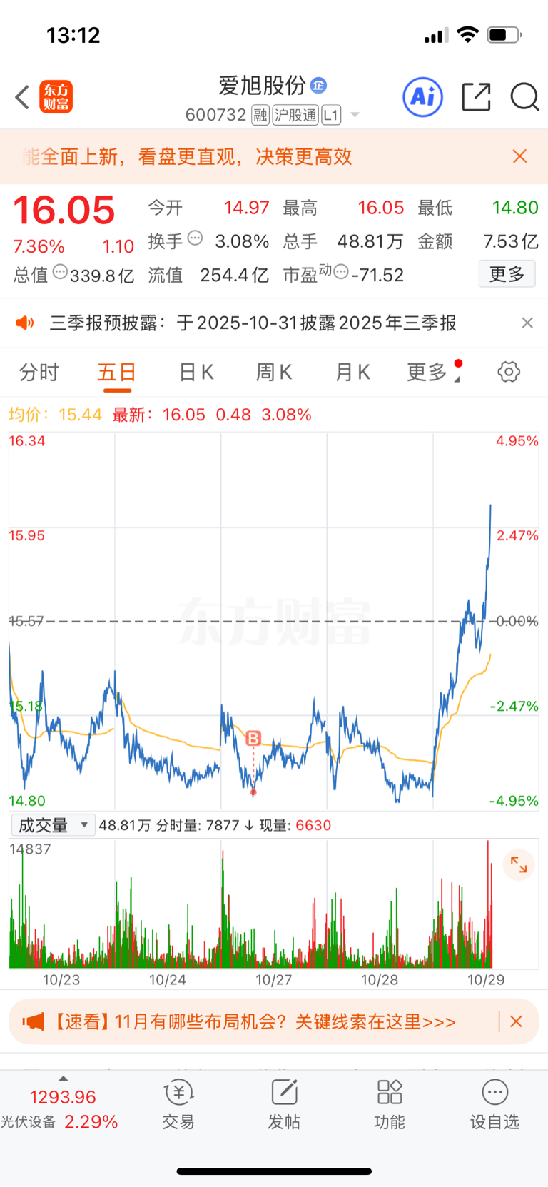 $爱旭股份(SH600732)$ 只做T赚小钱,继续加油涨吧
