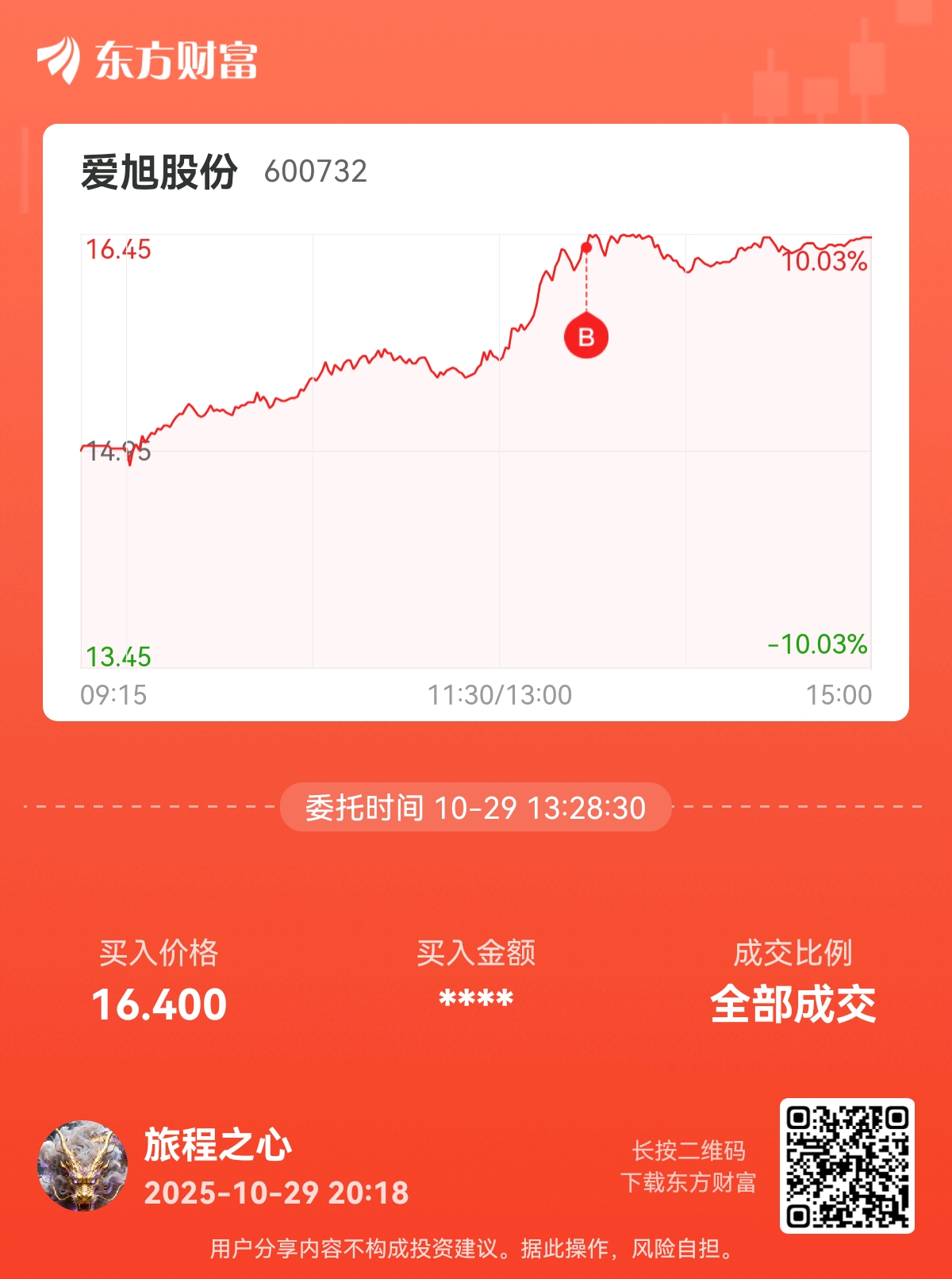 温馨提示: 1.根据《证券法》规定,禁止编造、传播虚假信息或者误导性信息,扰乱证券市场;2.用户在本社区发表的所有资料、言论等仅代表个人观点,与本网站立场无关,不对您构成任何投资建议。用户应基于自己的独立判断,自行决定证券投资并承担相应风险。《东方财富社区管理规定》