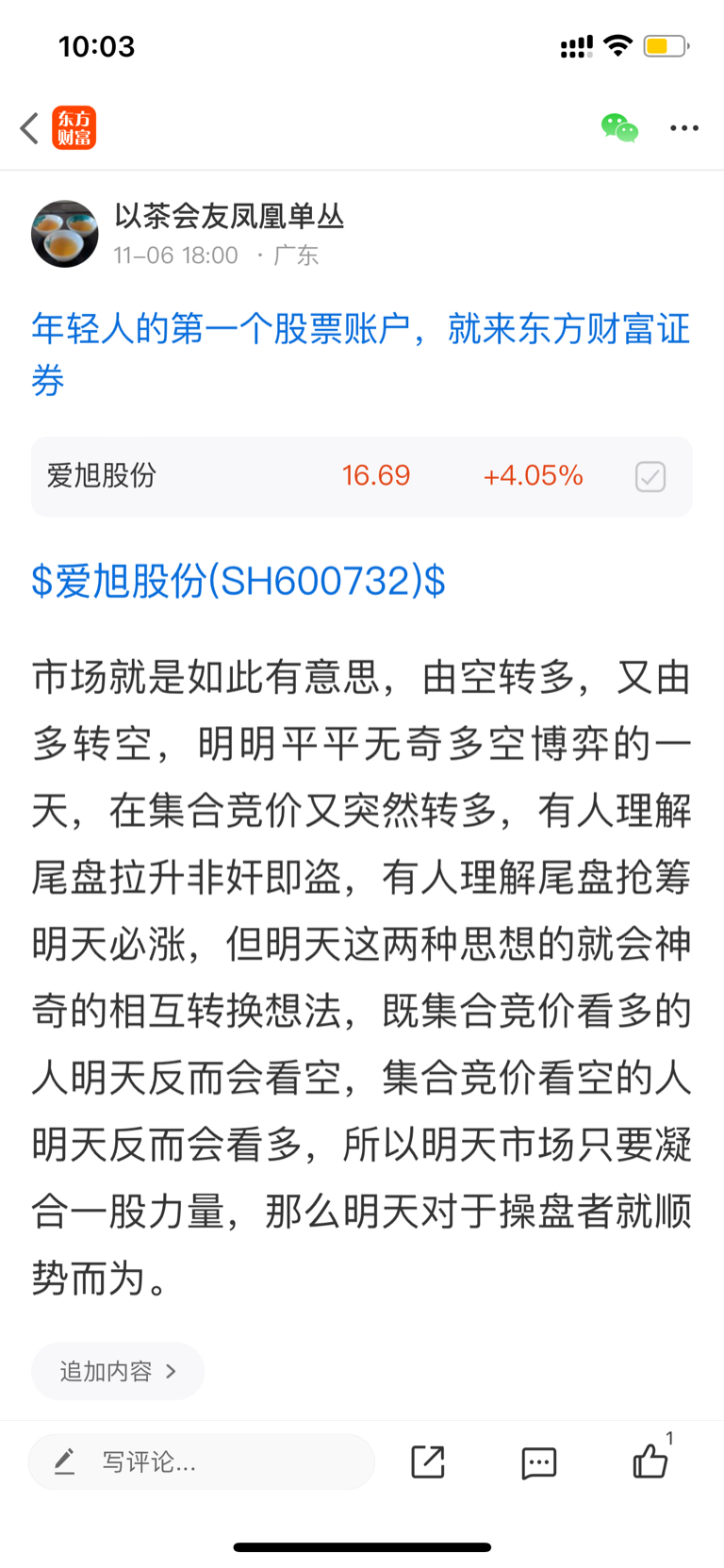 温馨提示: 1.根据《证券法》规定,禁止编造、传播虚假信息或者误导性信息,扰乱证券市场;2.用户在本社区发表的所有资料、言论等仅代表个人观点,与本网站立场无关,不对您构成任何投资建议。用户应基于自己的独立判断,自行决定证券投资并承担相应风险。《东方财富社区管理规定》