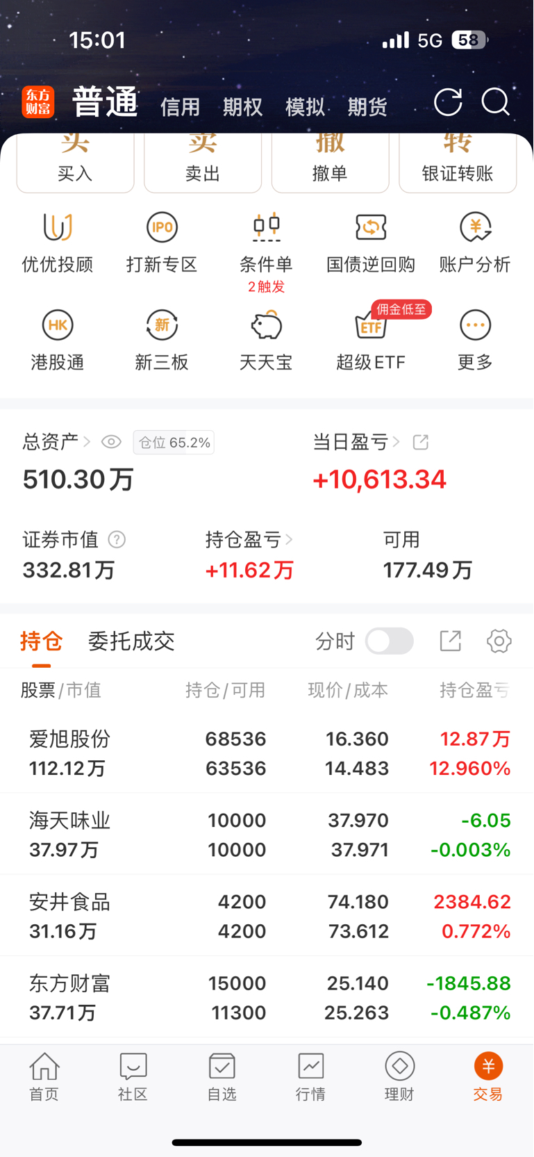 100%按规则交易。高位震荡的行情,我不太擅长,减仓为主。
