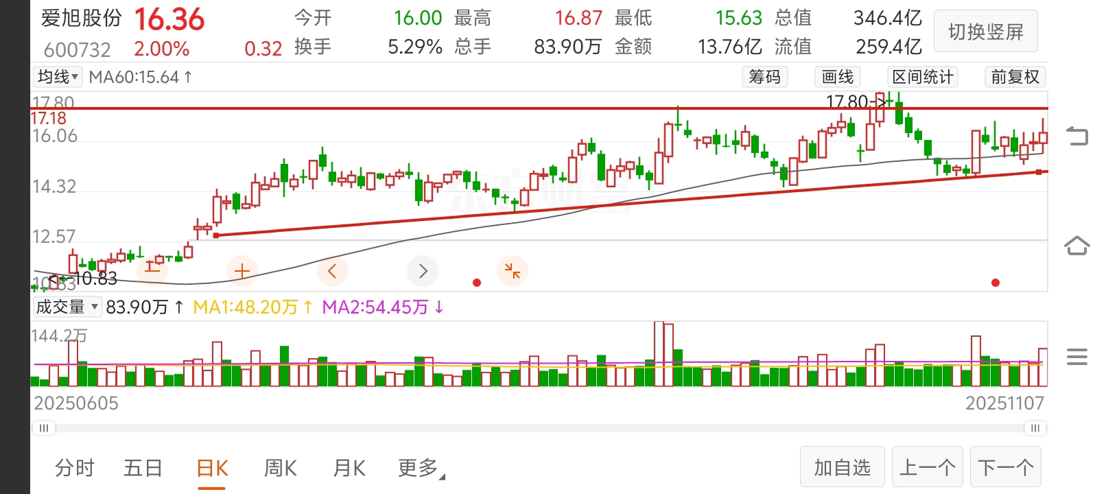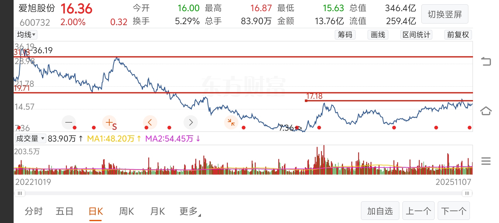 $爱旭股份(SH600732)$ 如果能够放量涨停突破上方牛熊分界线,那么此线即17.18元,即为买点;现在是16.36元,是超买点;如果破17.18元,则上方没有买点。给出上方价格,通过计算为34.36元。