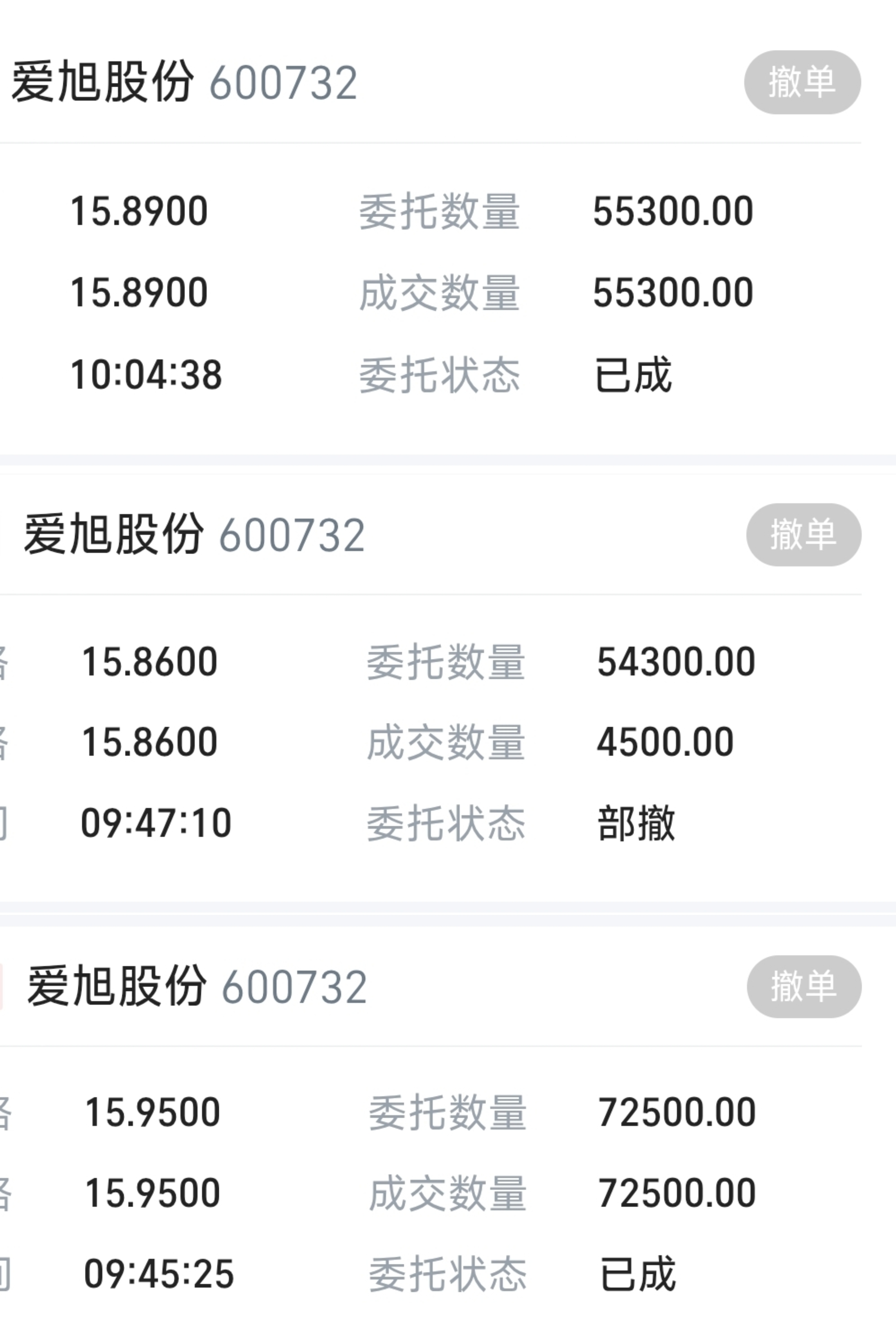 $爱旭股份(SH600732)$ 今天接回来了之前16.7以上走的,支持了旭子13W股,15以下的时候再继续支持