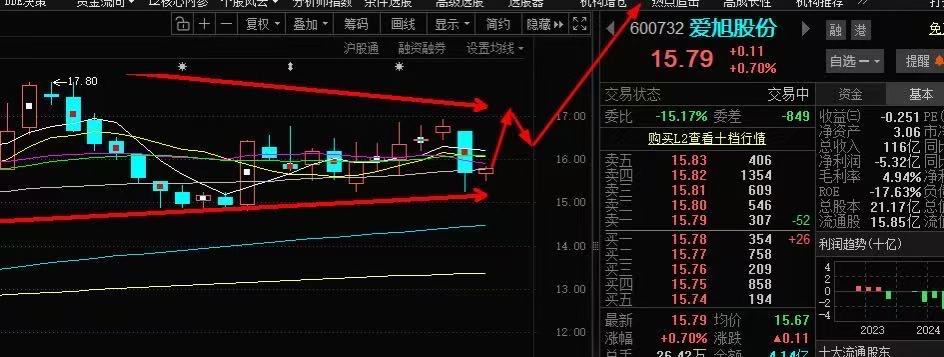 标准的收敛三角形走势。一旦突破压力线。至少30%短期涨幅我今日又回来了