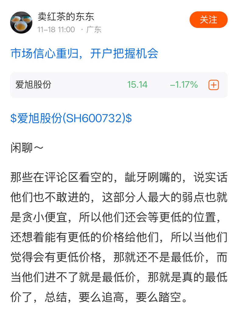 $爱旭股份(SH600732)$ 茶大师是不是亏的脑子槐了哈哈哈说什么呢语无伦次的,“当他们觉得有更低,就不是最低”你这不是认可我们么笑死了,真是“大师”就这还一堆人信哈哈哈哈