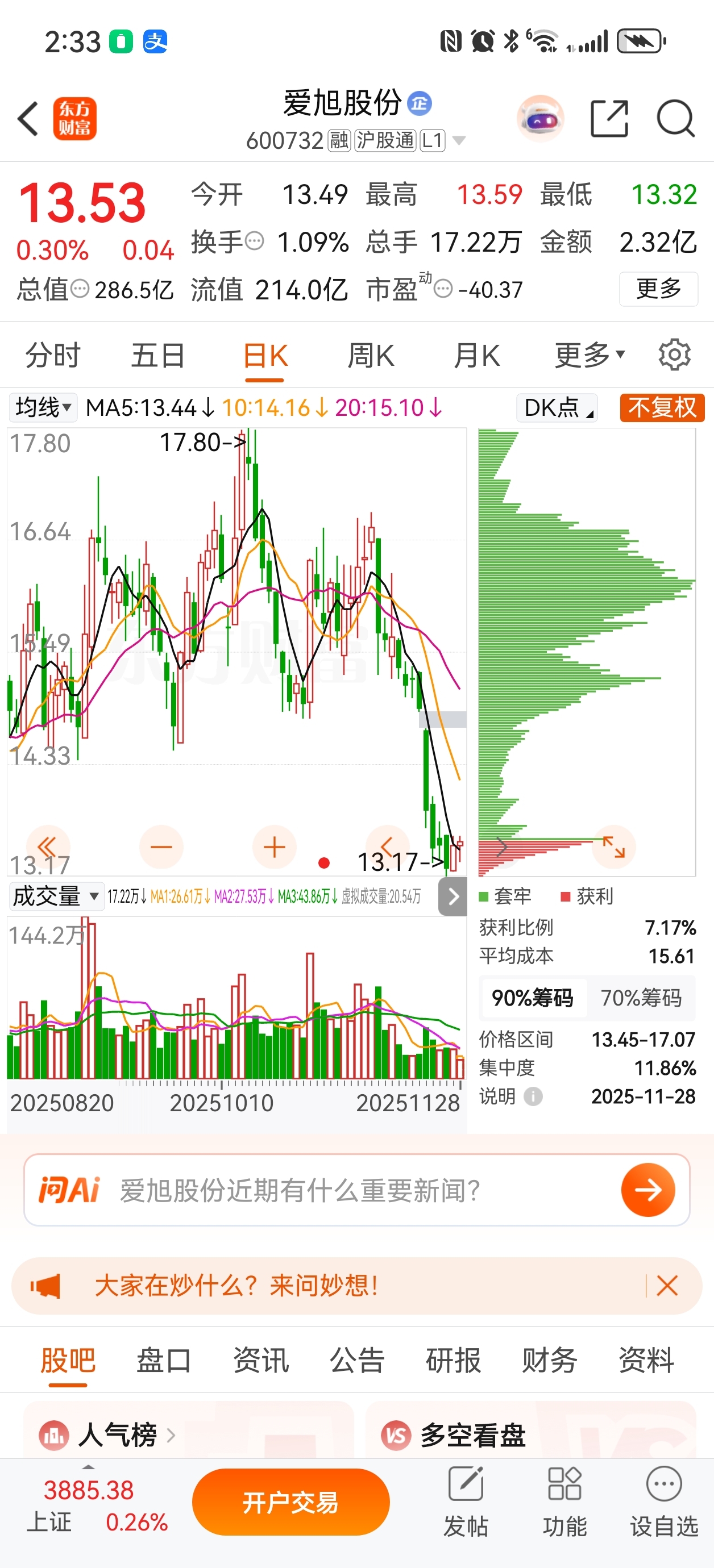 $爱旭股份(SH600732)$ 这绿油油的筹码峰,拉上去费牛劲啦