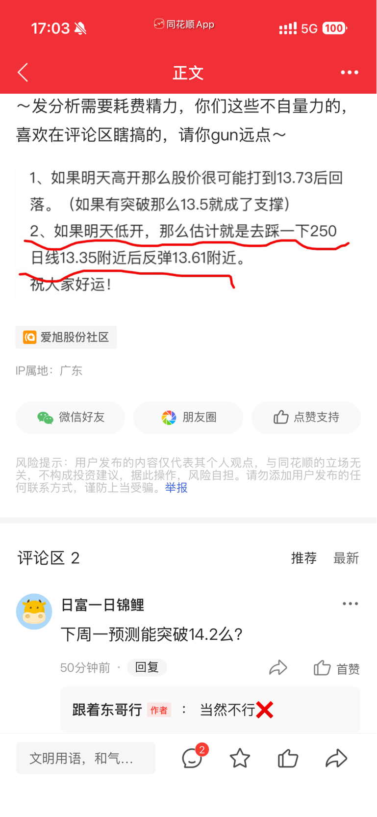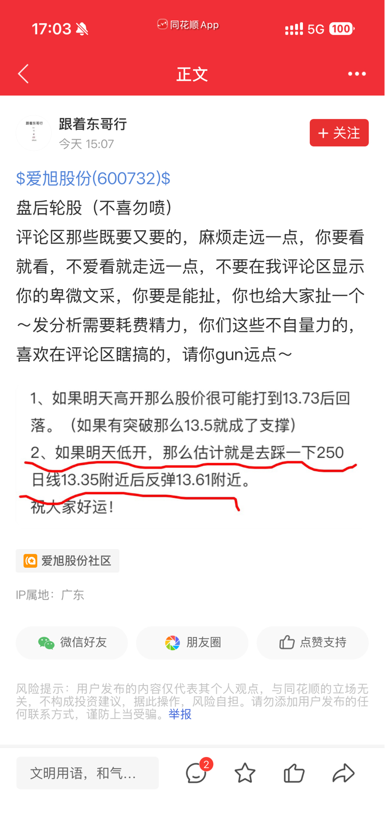 $爱旭股份(SH600732)$ 你茶大师东哥又预测了,等着被打脸吧哈哈哈还什么分析费精力,从16.7分析上涨都分析到13.5了还有脸出来呢,不得不说这脸皮是真侯啊
