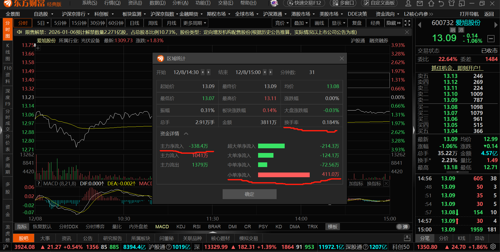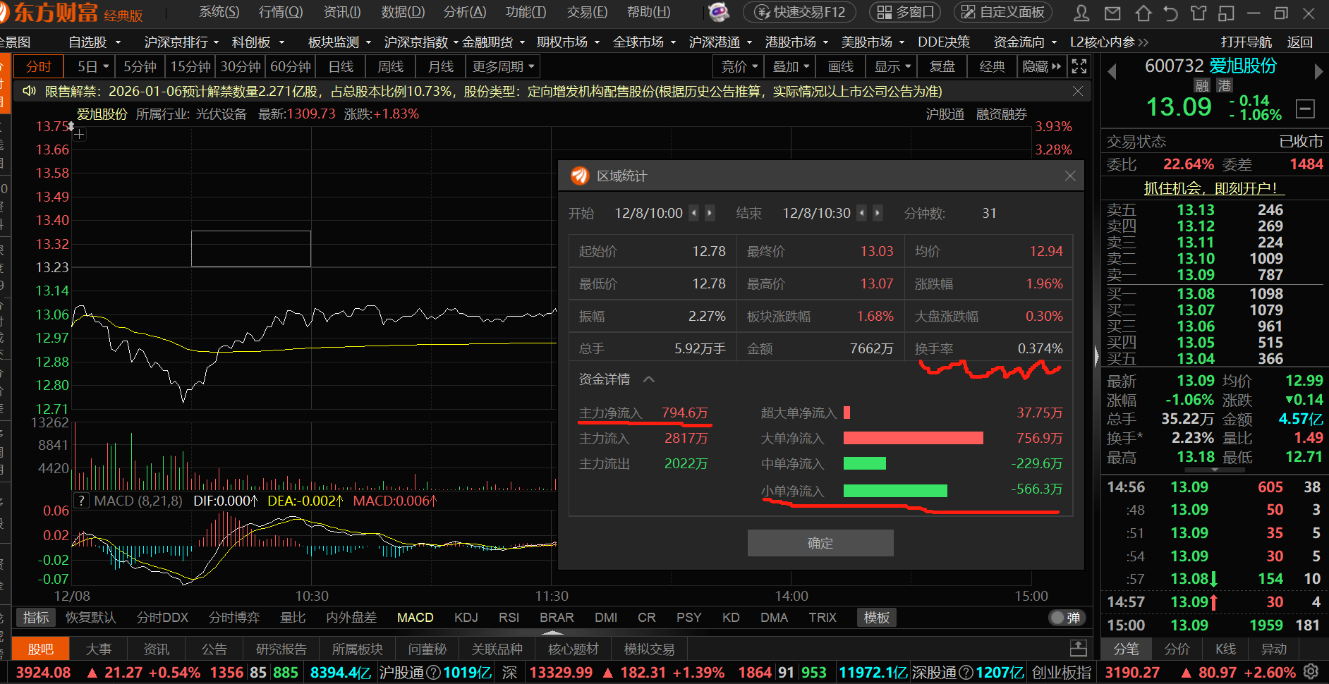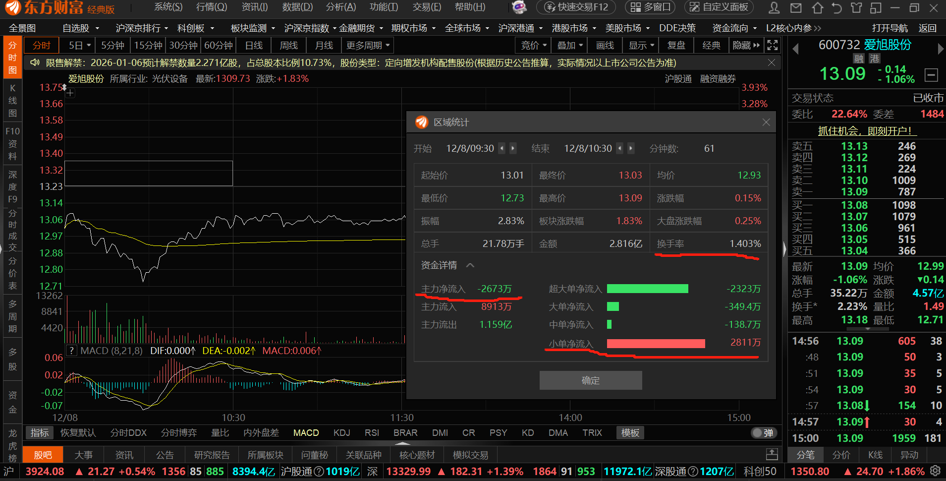 晚上闲来无事,把今天开盘半小时,一小时和收盘前半小时的数据统计了一下,挺好玩的,