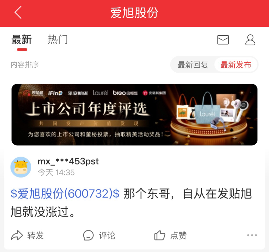 温馨提示: 1.根据《证券法》规定,禁止编造、传播虚假信息或者误导性信息,扰乱证券市场;2.用户在本社区发表的所有资料、言论等仅代表个人观点,与本网站立场无关,不对您构成任何投资建议。用户应基于自己的独立判断,自行决定证券投资并承担相应风险。《东方财富社区管理规定》