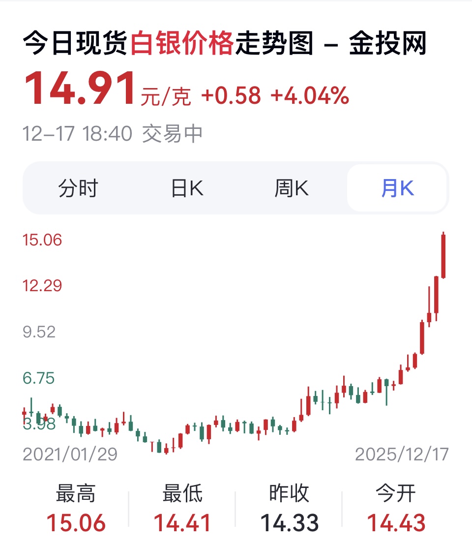 已经比BC高了,白银价格今 天升破了15元/克,比二季度高出115%,这样对业绩影响会在明年二季度完全呈现出来。