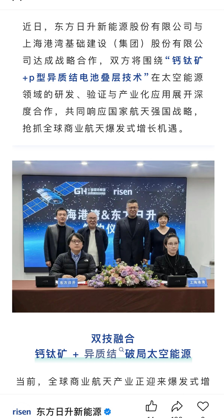 $爱旭股份(SH600732)$ 东方日升,太空光伏