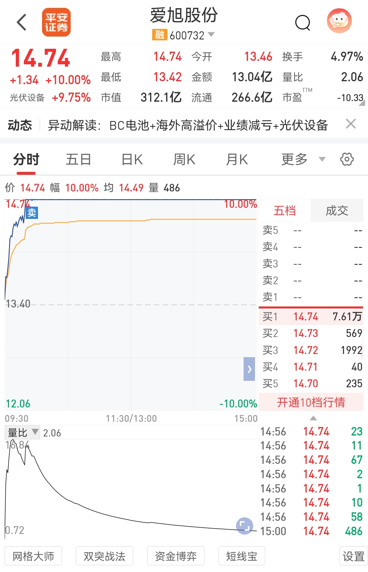 $爱旭股份(SH600732)$ 明天冲主线HJT跟钙钛矿电池,BC电池一日游。