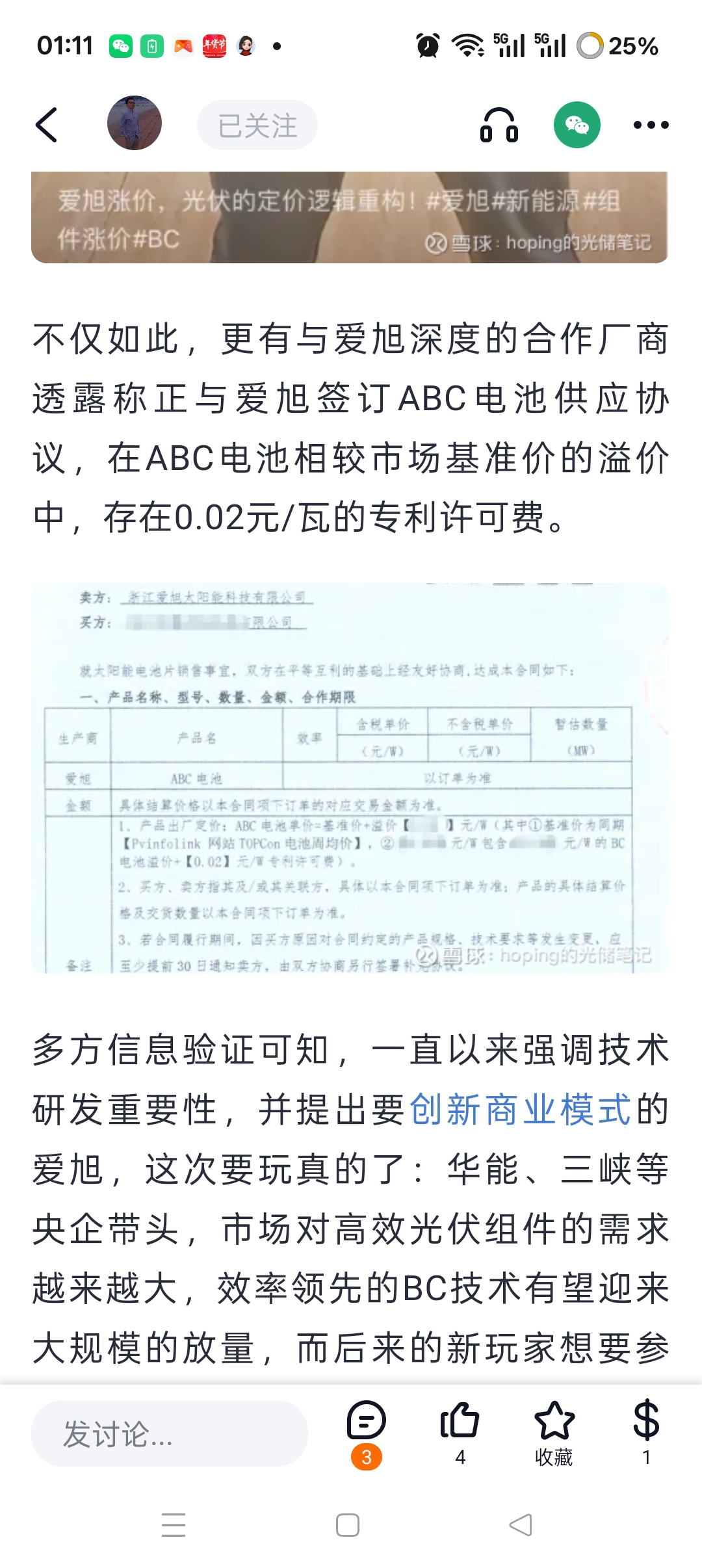 $爱旭股份(SH600732)$ 爱旭的ABC组件价格每瓦加0.02元的专利费!