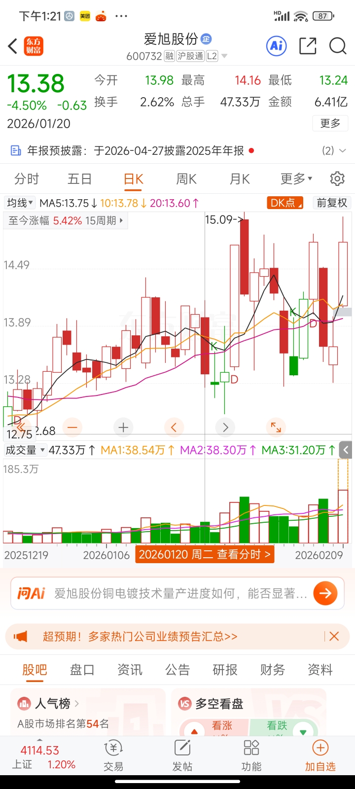 $爱旭股份(SH600732)$ 这涨涨不上去,降降不下来,是不是在这里专门做t?