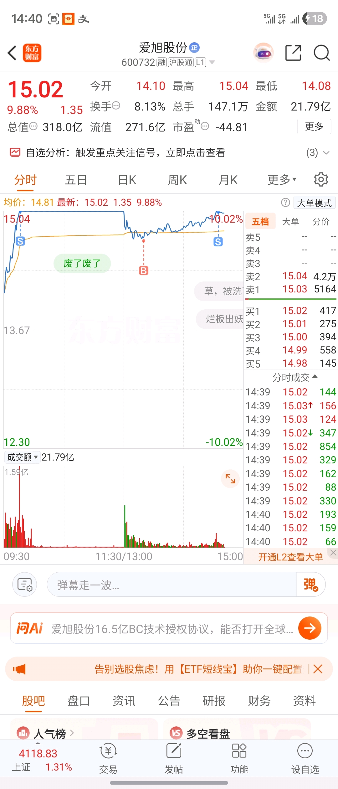 $爱旭股份(SH600732)$ 东哥我这个操作怎么样