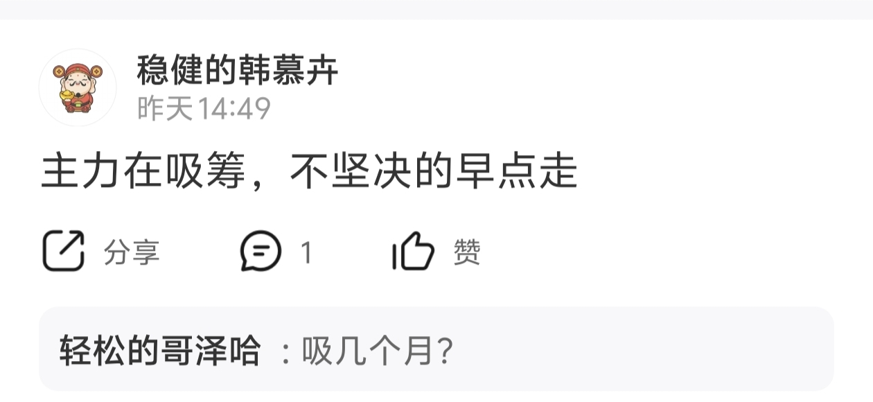 温馨提示: 1.根据《证券法》规定,禁止编造、传播虚假信息或者误导性信息,扰乱证券市场;2.用户在本社区发表的所有资料、言论等仅代表个人观点,与本网站立场无关,不对您构成任何投资建议。用户应基于自己的独立判断,自行决定证券投资并承担相应风险。《东方财富社区管理规定》
