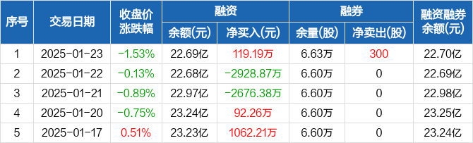 北汽蓝谷:融资净买入119.19万元,融资余额22.69亿元(01-23)
