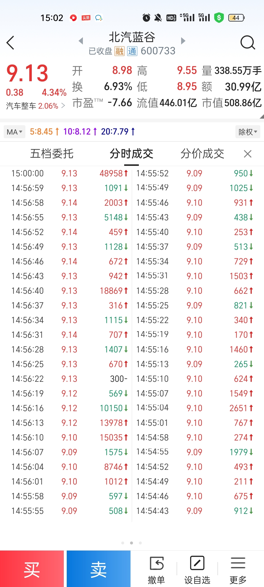 $北汽蓝谷(SH600733)$ 这尾盘是抢筹还是出货