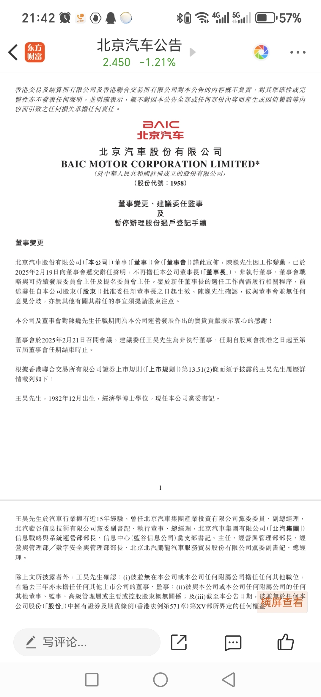 看北京汽车公告,暂停股东大会应该和董事变更有关