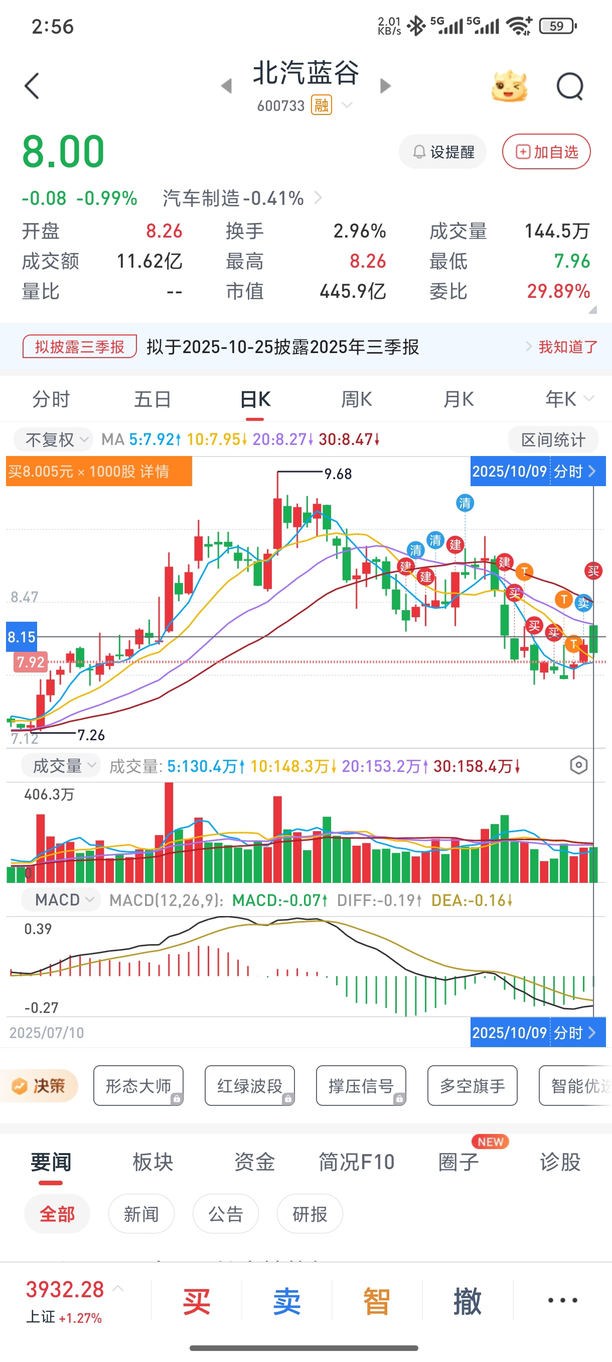 $北汽蓝谷(SH600733)$ 没忍住,7.98加仓了,手上的广汽都比你强