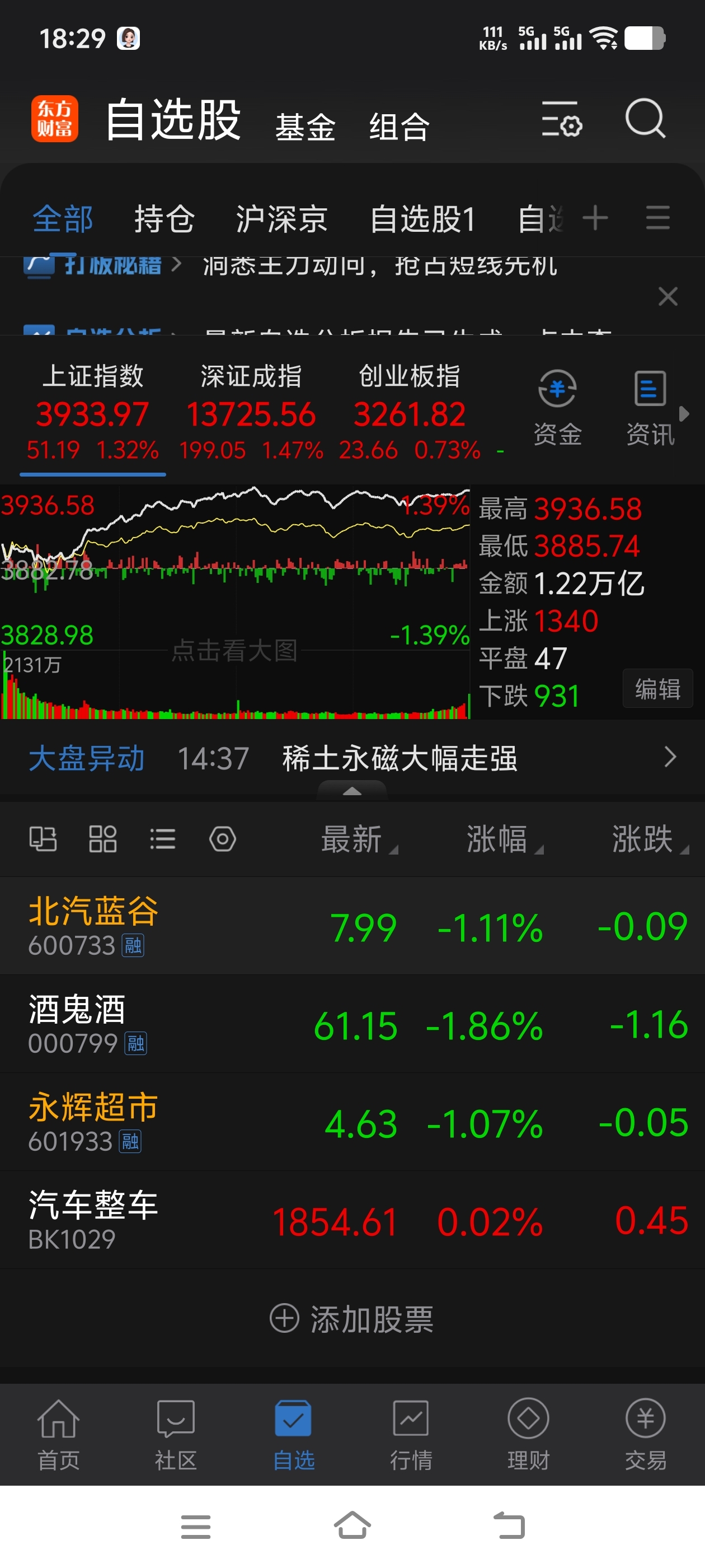 什么情况,大盘这么好,我的自选全是绿的什么情况啊