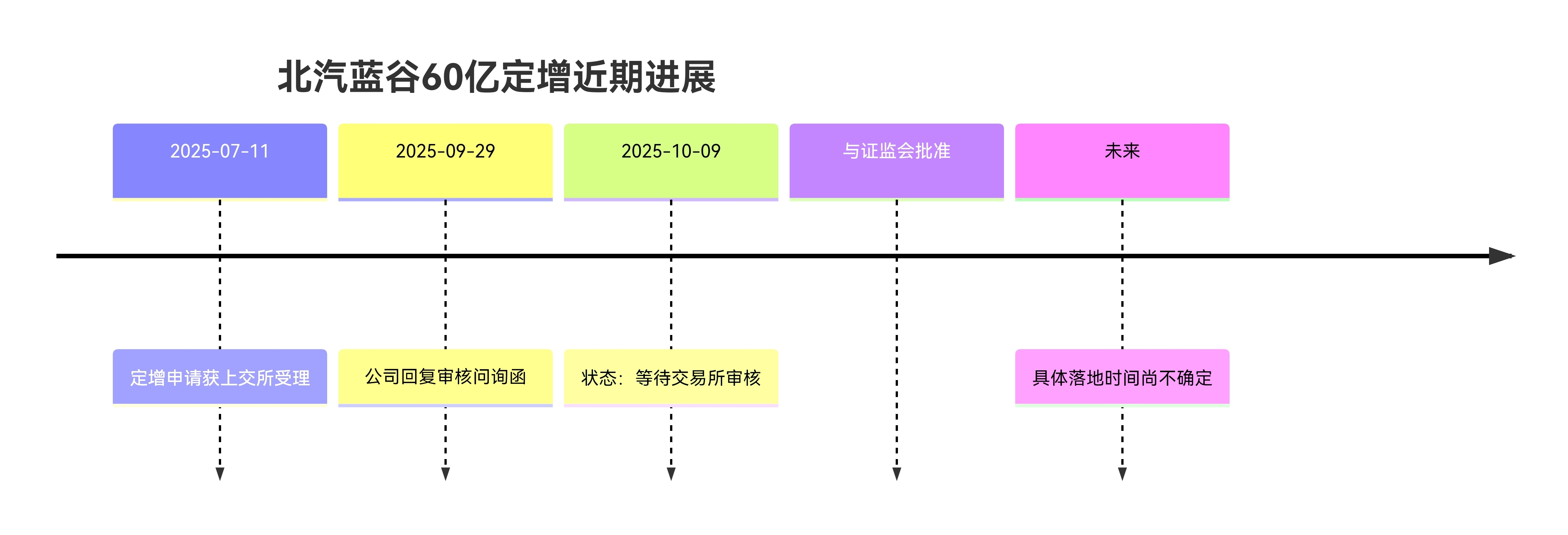 定向增发:已进入审核阶段,静候批文北汽蓝谷60亿定增近期进展2025-07-11