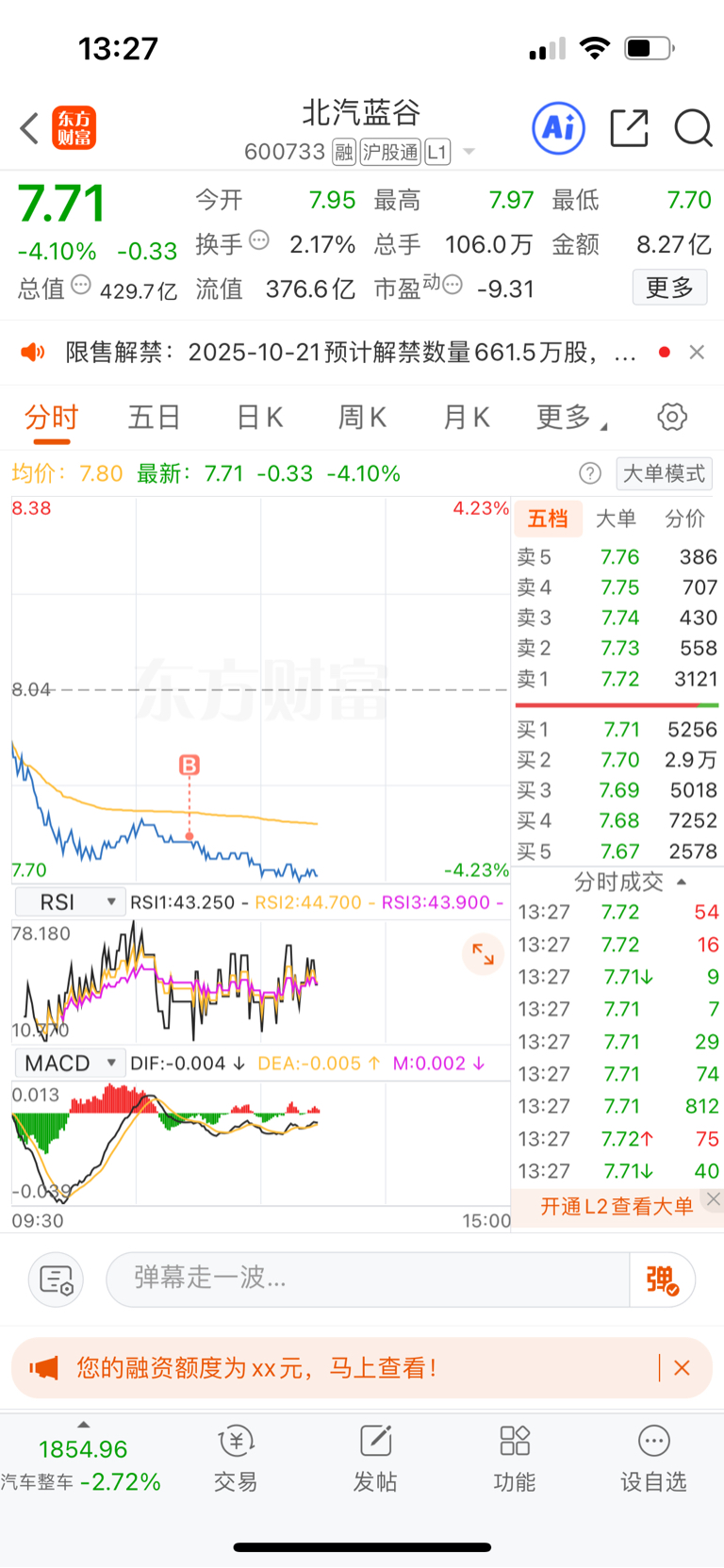 $北汽蓝谷(SH600733)$ 再加0.5层仓、一共9层仓。