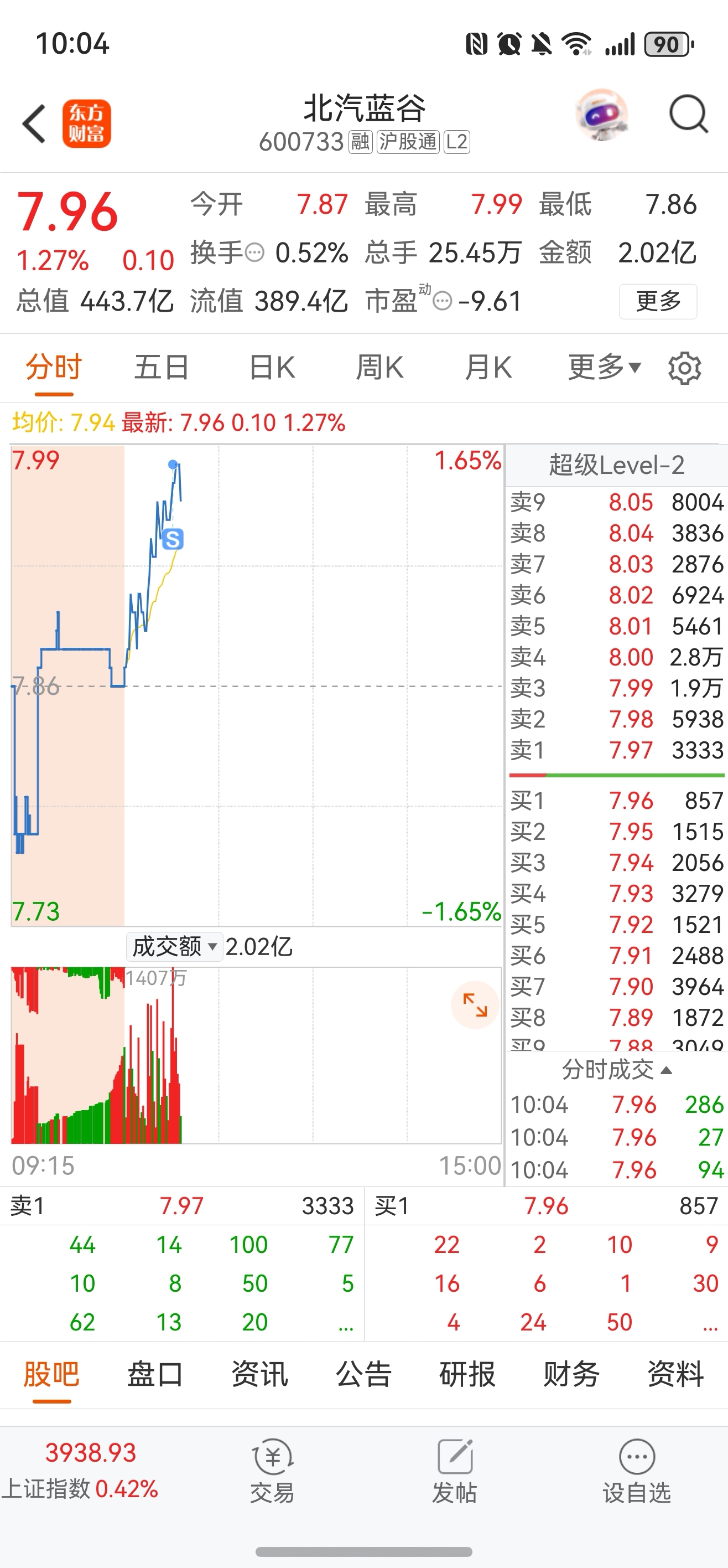 $北汽蓝谷(SH600733)$ 这是今天最高点吗