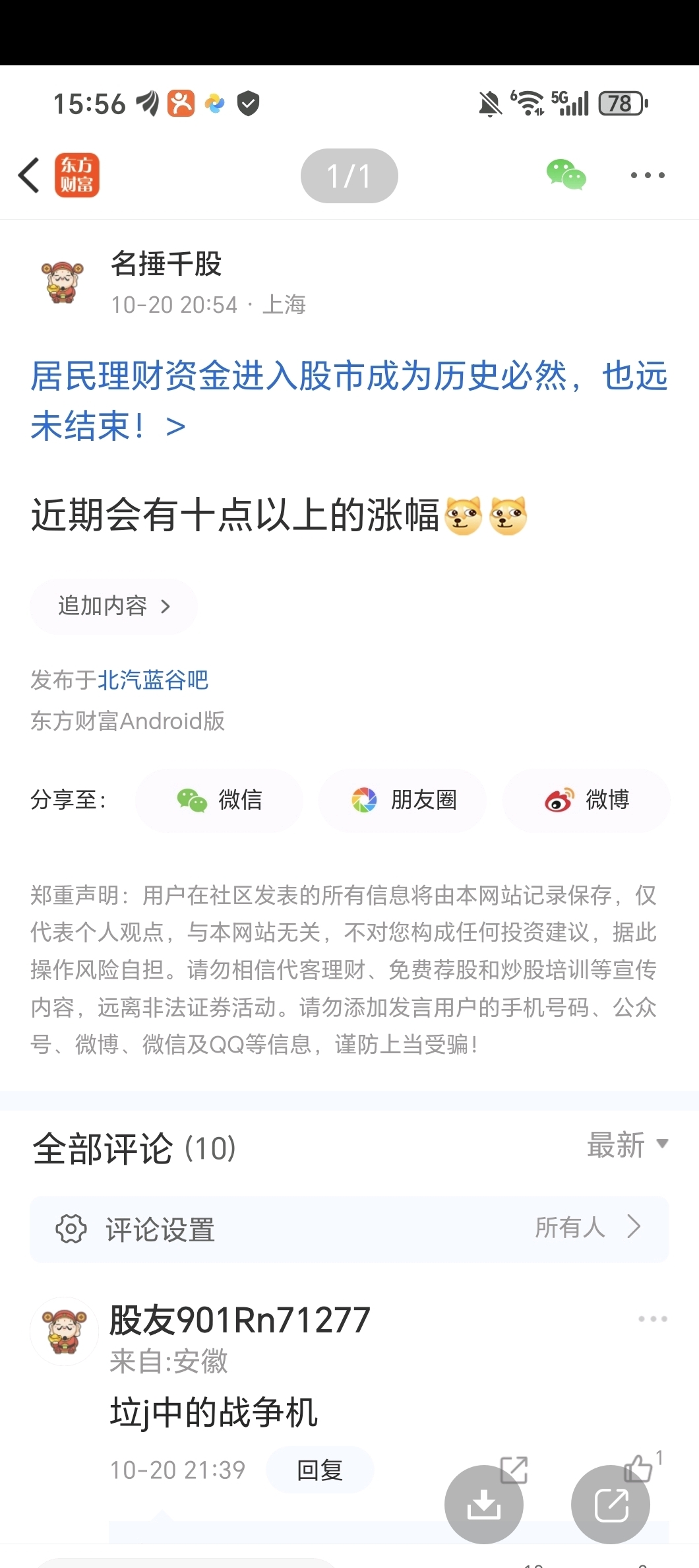 温馨提示: 1.根据《证券法》规定,禁止编造、传播虚假信息或者误导性信息,扰乱证券市场;2.用户在本社区发表的所有资料、言论等仅代表个人观点,与本网站立场无关,不对您构成任何投资建议。用户应基于自己的独立判断,自行决定证券投资并承担相应风险。《东方财富社区管理规定》