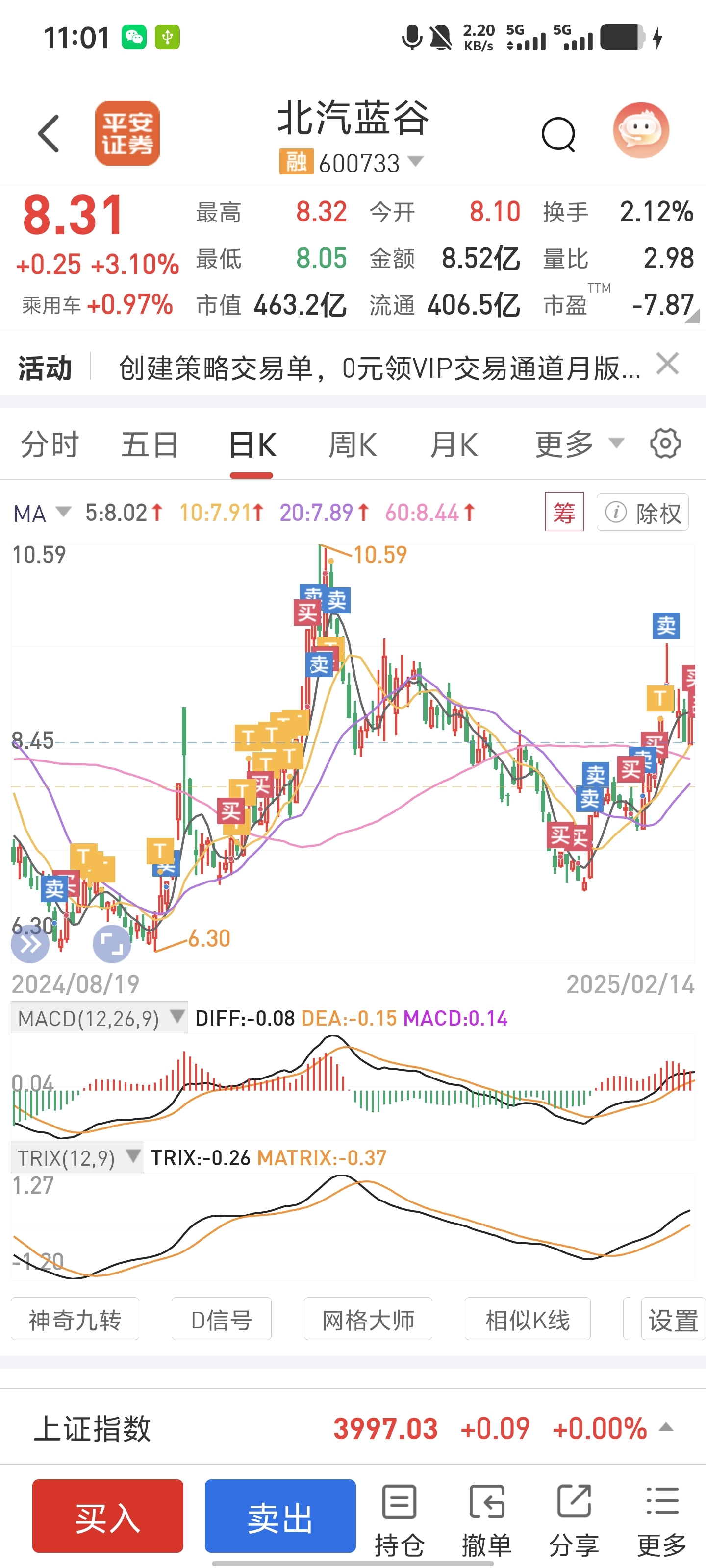 $北汽蓝谷(SH600733)$ 长期抗战去年10.3全卖了吃了一口肉今年才喝了点汤