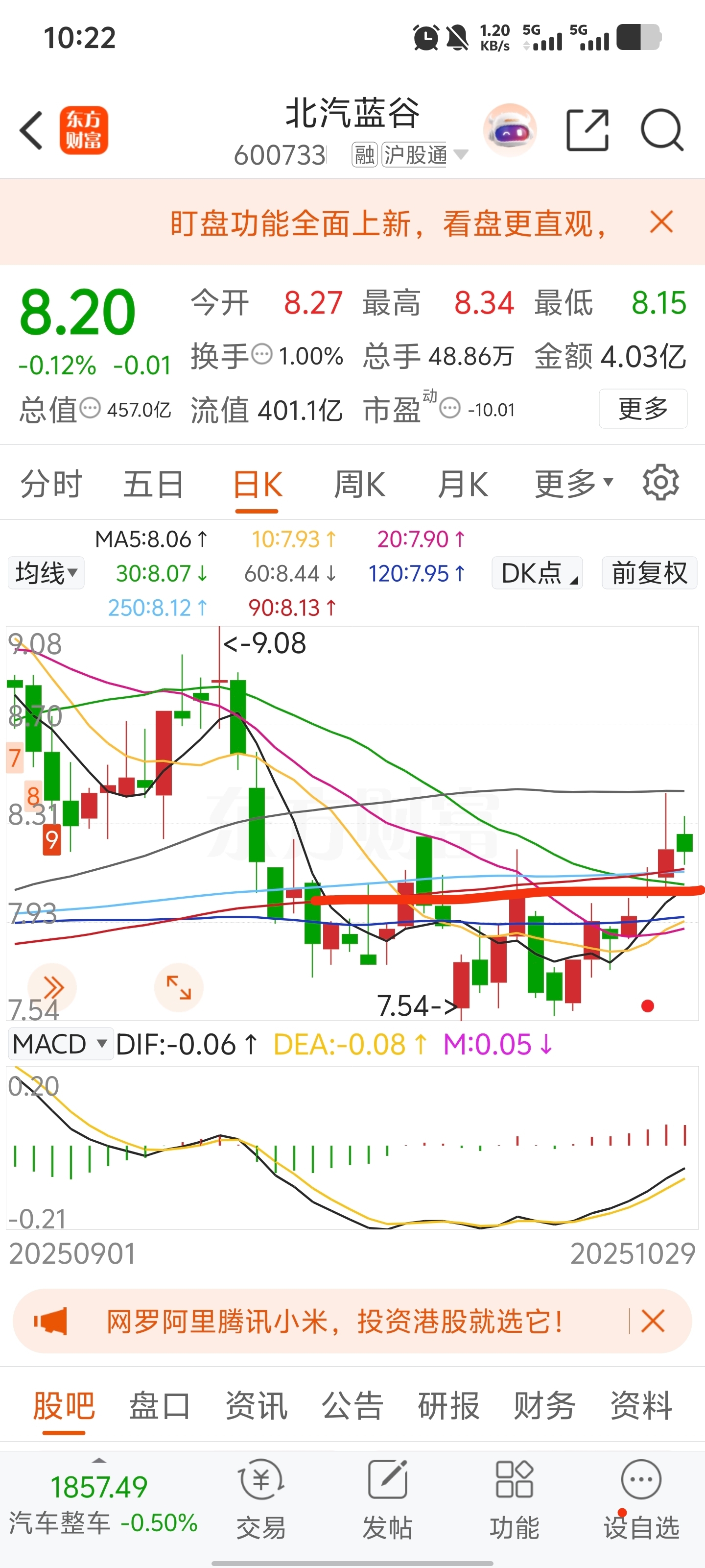 $北汽蓝谷(SH600733)$ 起飞的盘口啊回踩均线