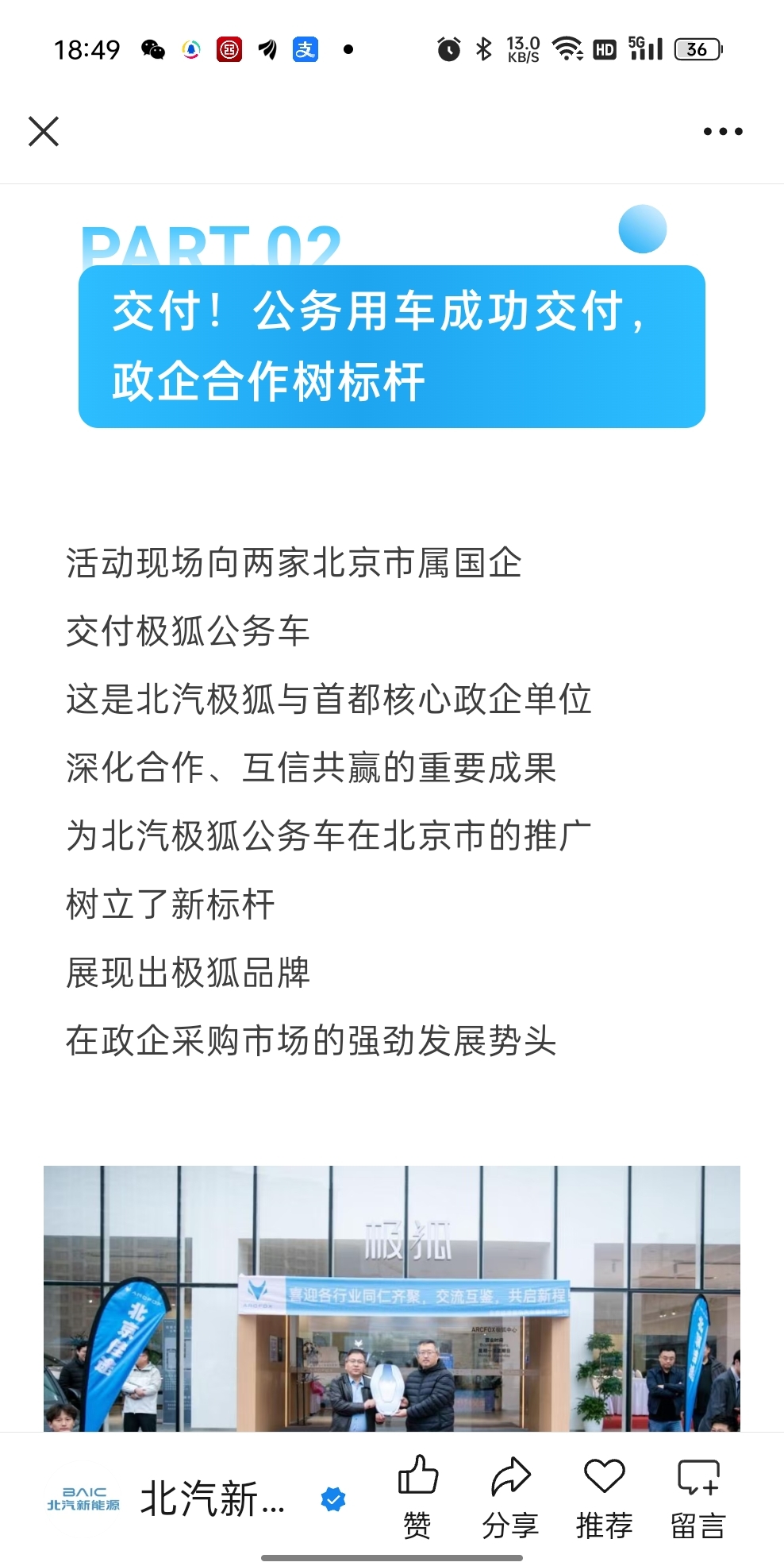 北京市国资委副主任张建勇到北汽集团担任董事长,北京市的公务用车首选北汽极狐车,可