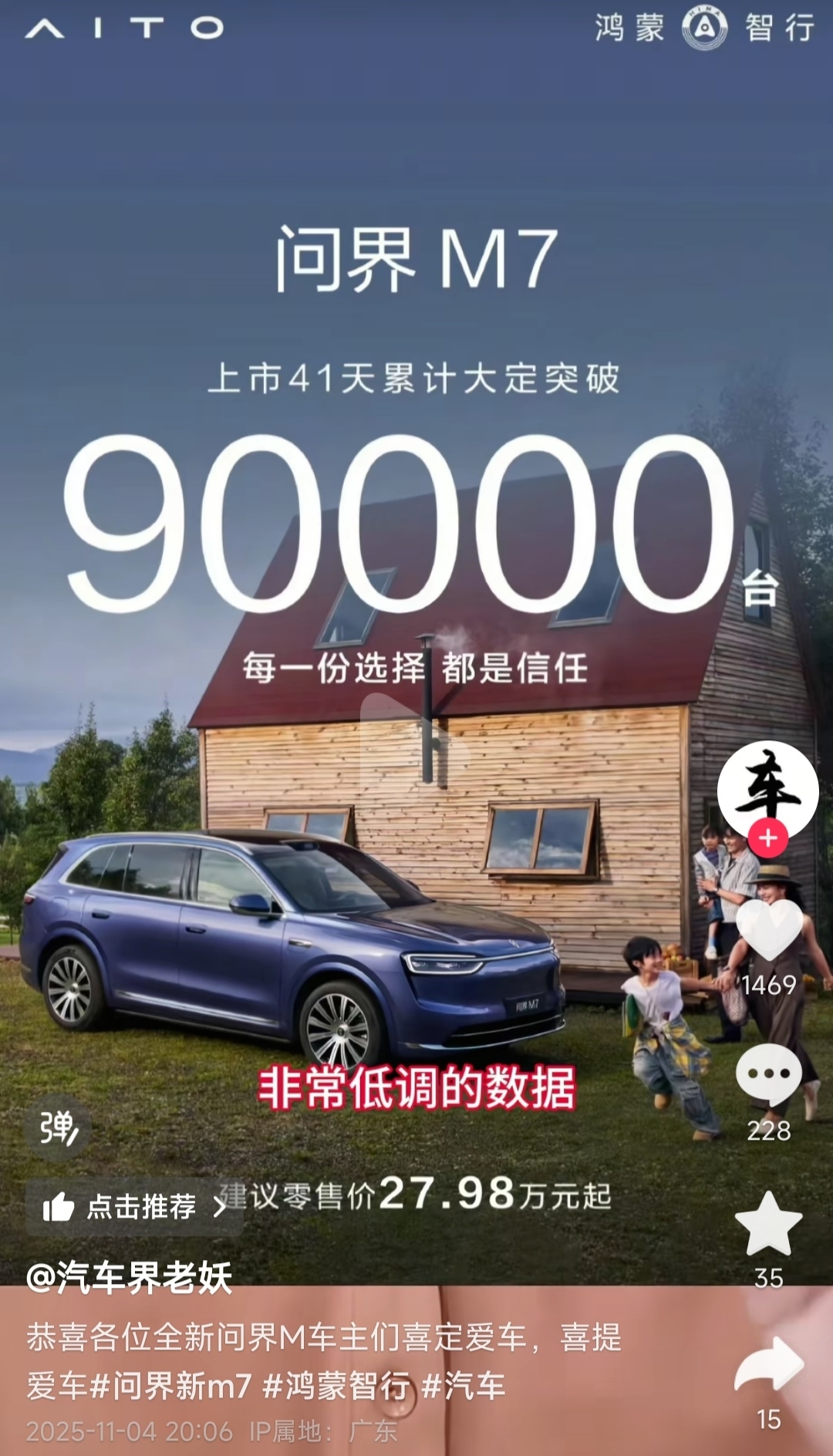 问界新m7大定突破九万。享界s9t什么时候能突破3万?