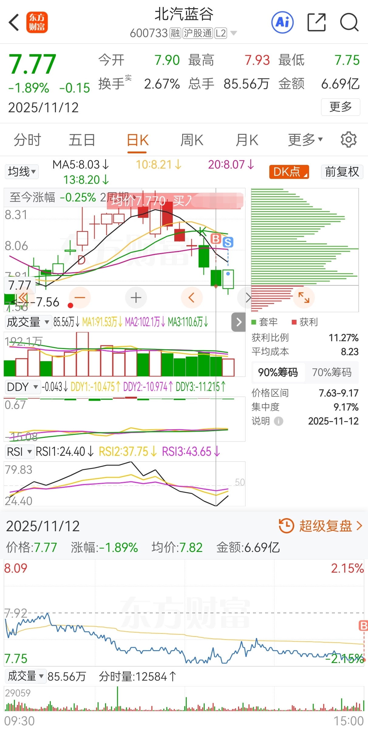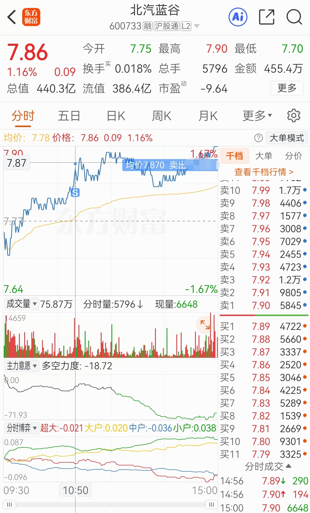 今买明卖,7.77买,7.87卖,实盘隔夜套利北汽蓝谷,成功收米走人!