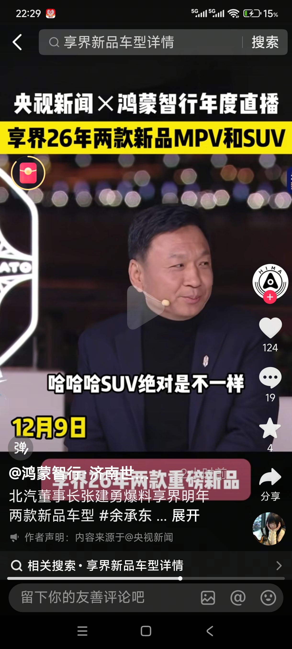 ‘享界明年有三款新车,硬派越野,MPV,确实有一款走量的suv。
