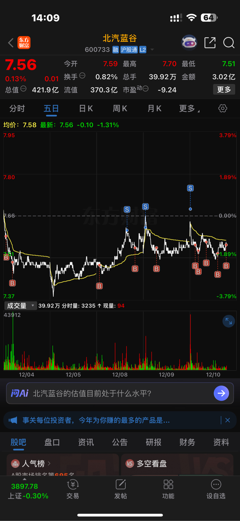 今年蓝谷赚了三十个点!感谢主力
