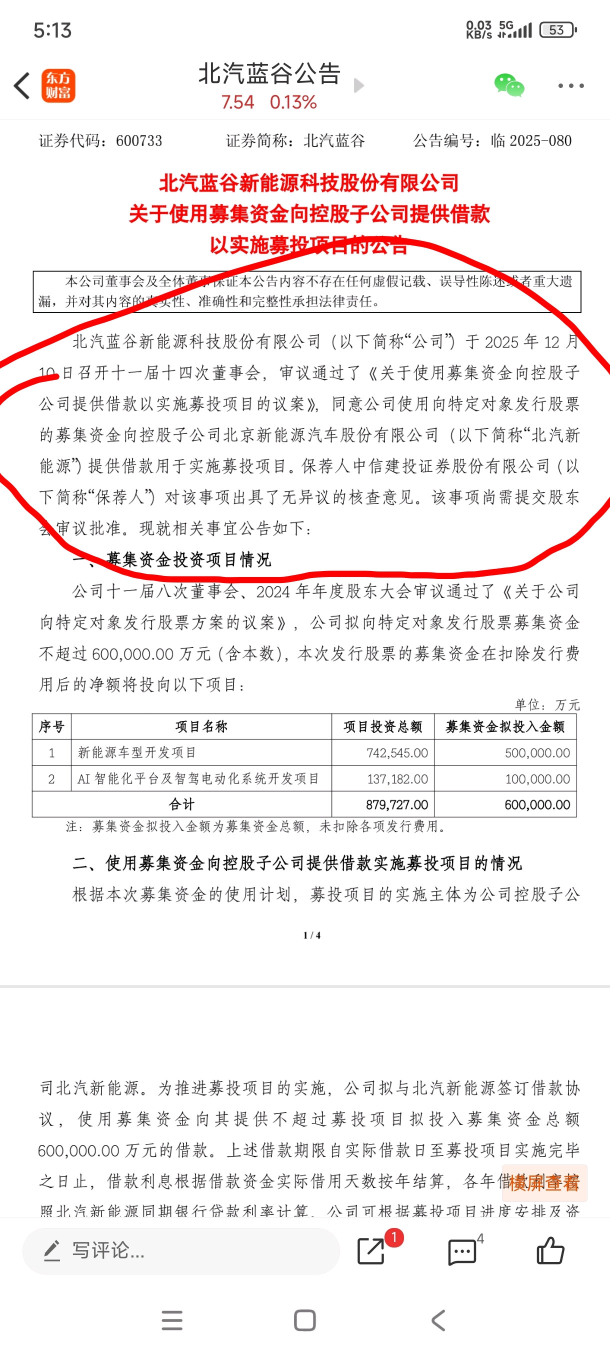 同意公司把定增募集的资金借给子公司。定增的钱到了?