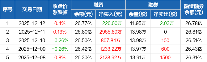 北汽蓝谷:融资净偿还220万元,融资余额26.77亿元(12-12)