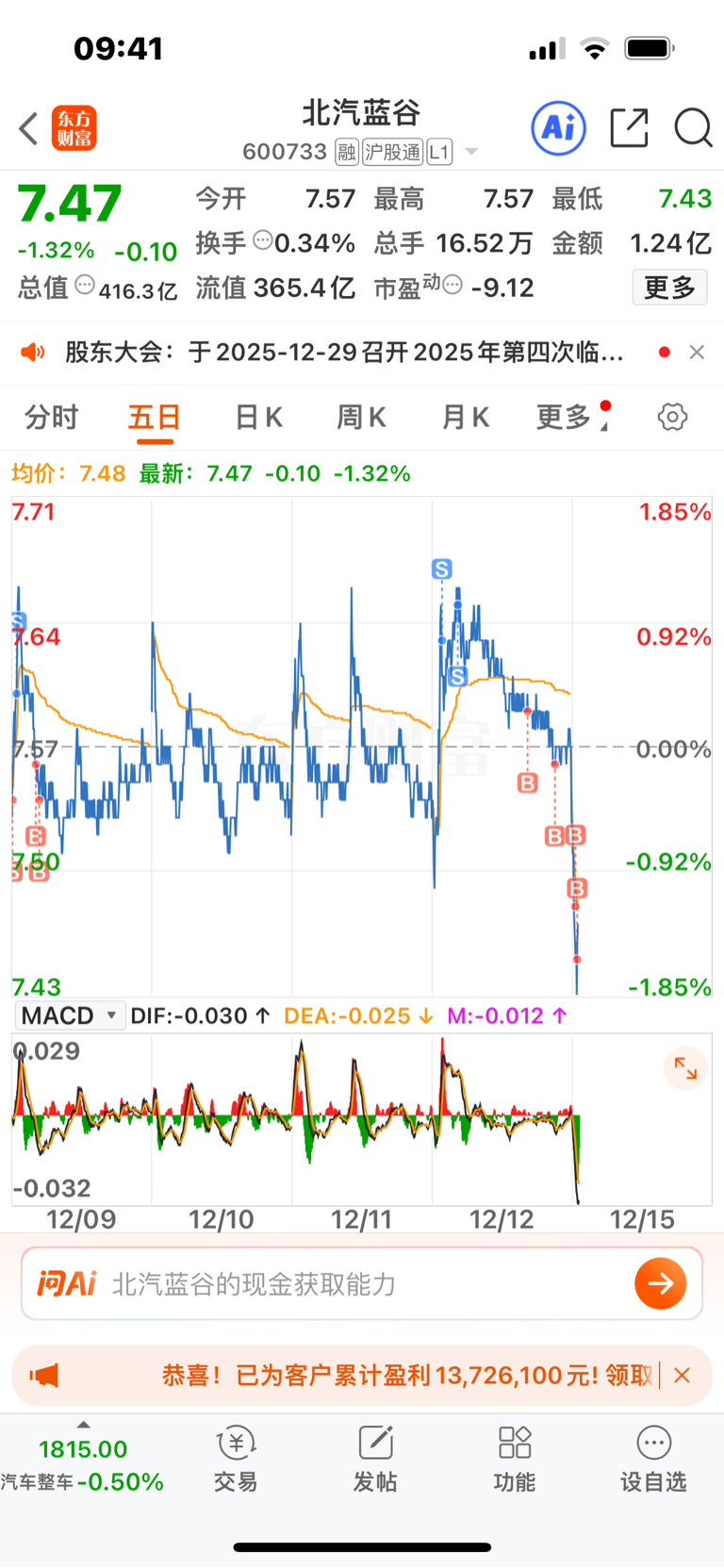 $北汽蓝谷(SH600733)$ 拉高就T没有跑