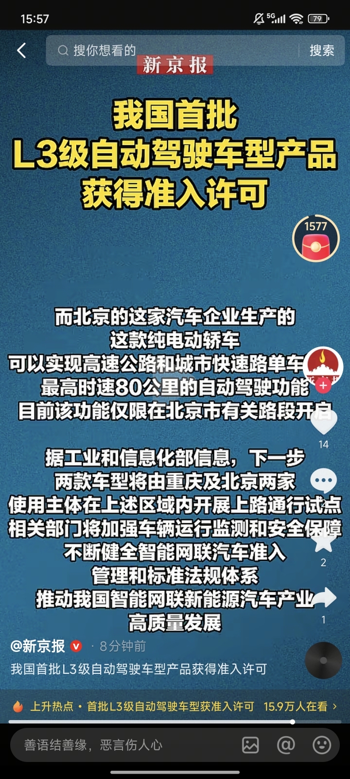 明天有不错的涨幅自动驾驶L3有极狐只有2家