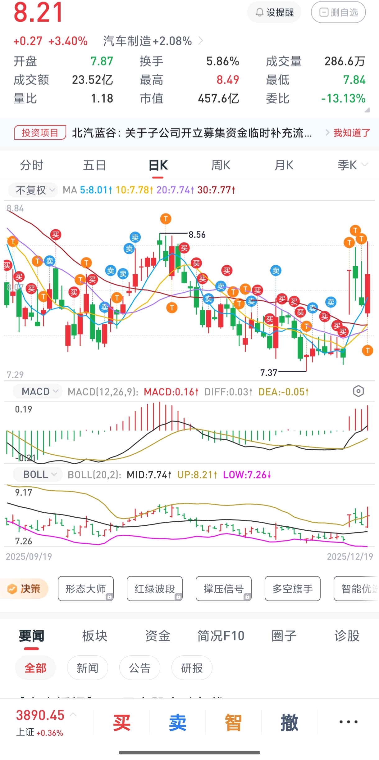 $北汽蓝谷(SH600733)$ 4天吃了20点。周末没有定增出来估计又要下去了。这几天适合做t。今天出了一半。后面有机会再接了