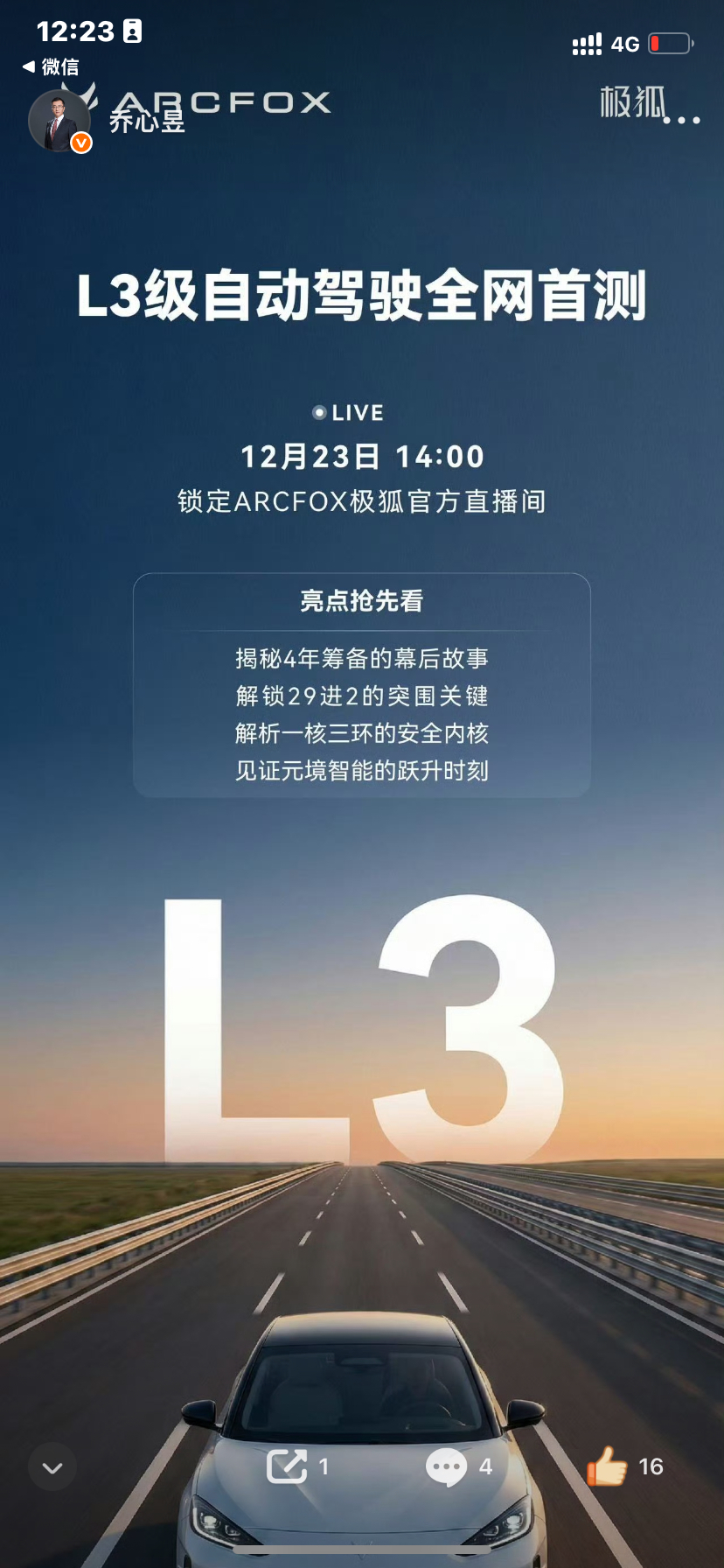 $北汽蓝谷(SH600733)$ 中国历史上首次获工信部牌照的L3,极狐S6,正式脱离方向盘自动驾驶直播,锁定今天下午两点直播频道!!!!!