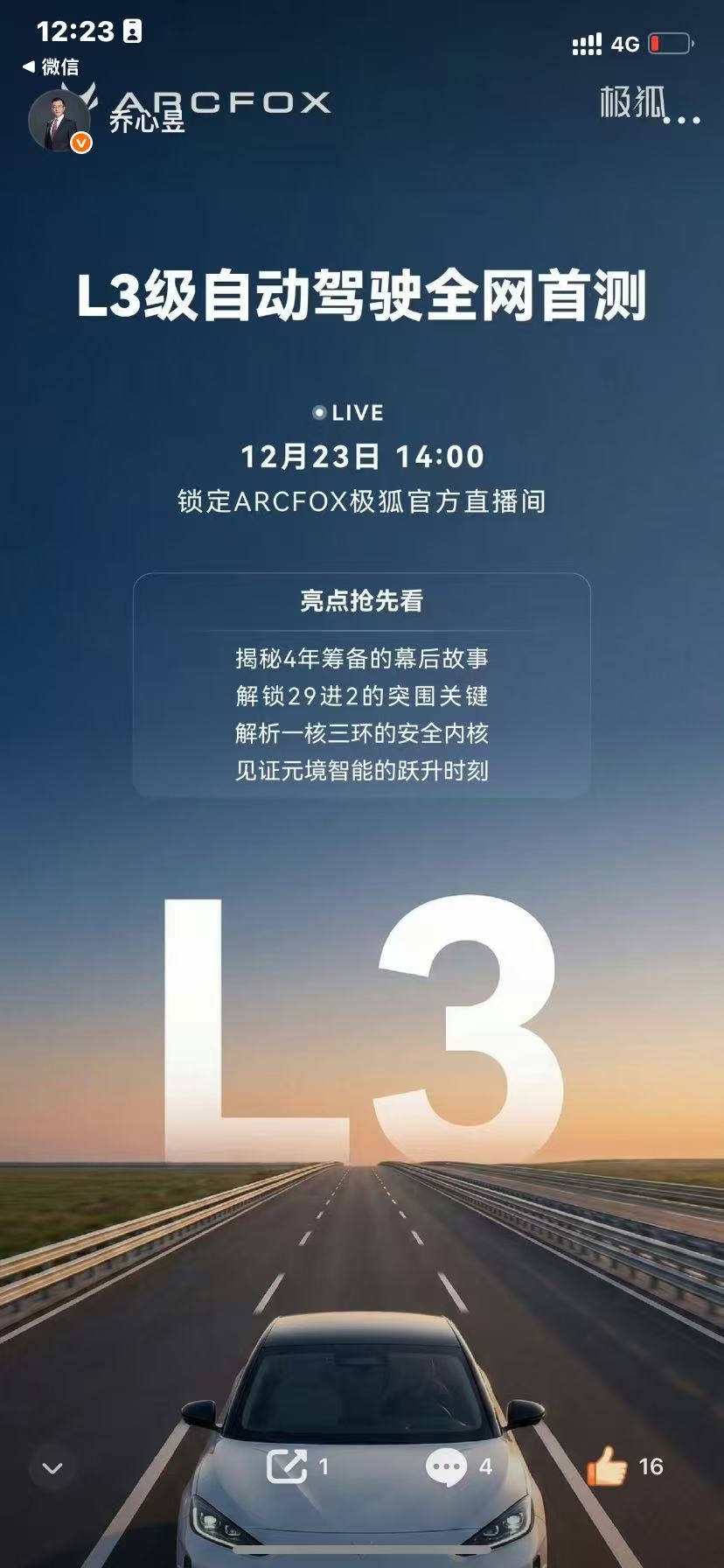 中国历史上首次获工信部牌照的L3,极狐S6,正式脱离方向盘自动驾驶直播,锁定今天